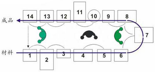 生產同步化的理想狀態是工件在各工序間一個一個生產、一個一個往下一道工序傳遞,直至總裝線,即單件生產、單件流動。工廠中有各種各樣的工序,為了實現全部生產過程的同步化,需要根據這些工序的特點,使批量盡量縮小,朝理想的“1個流”靠攏。但這樣一來,作業切換就會變得很頻繁。