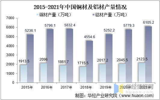 電線電纜主要由導體線芯、絕緣層和護層等部分構(gòu)成,其中導體線芯主要由銅材、鋁材構(gòu)成,銅、鋁原材料在電線電纜產(chǎn)品所需的原材料中占比最大。我國是世界上第二大產(chǎn)銅國和第一大原鋁生產(chǎn)國,市場供應(yīng)充足。據(jù)資料顯示,2021年我國銅材產(chǎn)量為2123.5萬噸,同比增長3.8%;鋁材產(chǎn)量為6105.2萬噸,同比增長5.6%。